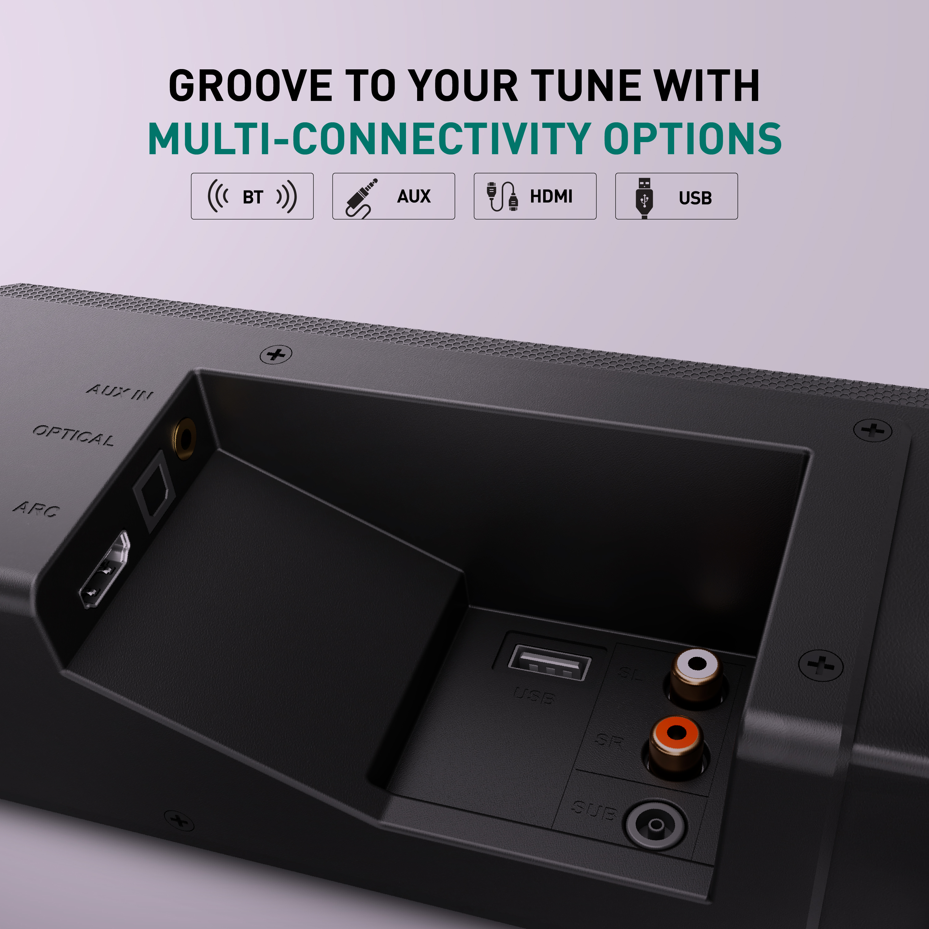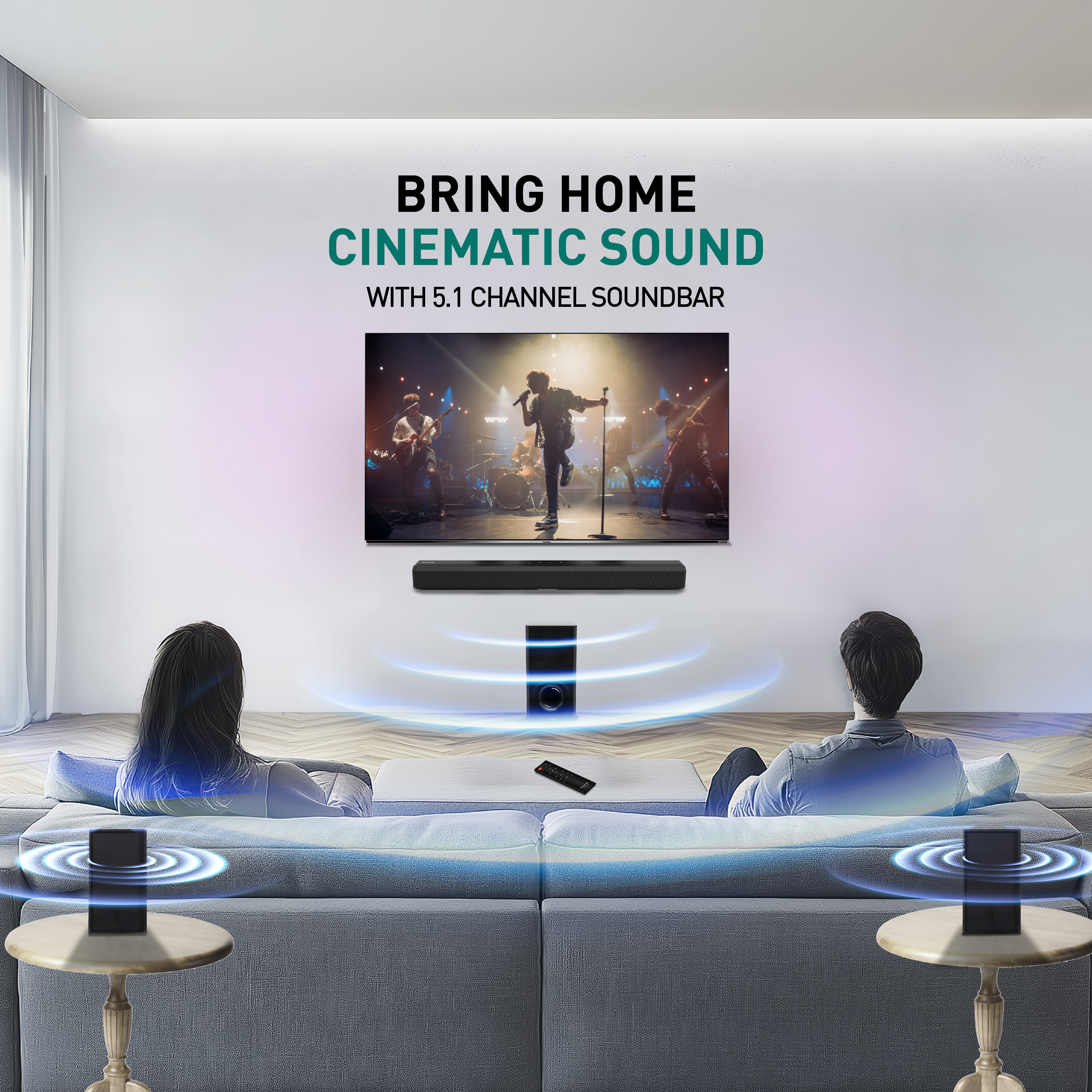 Transform your living room into a personal theater with the immersive sound experience of 5.1 Ch soundbar system.