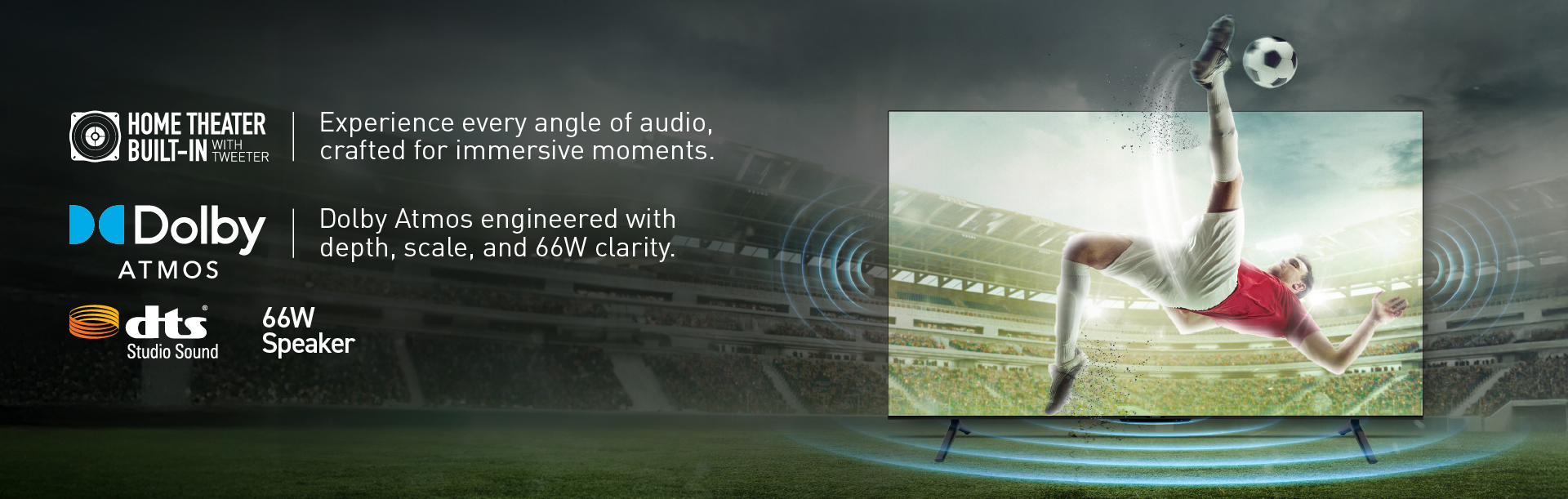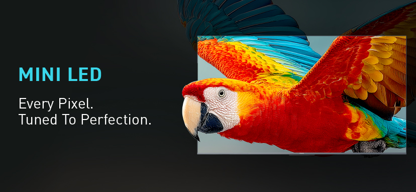 Bring home the brilliance of studio-calibrated Colour and sound. With Pixel Dimming, Dolby Vision, and 66W Built-In Home Theatre, Mini LED delivers a front-row cinematic experience from your living room.