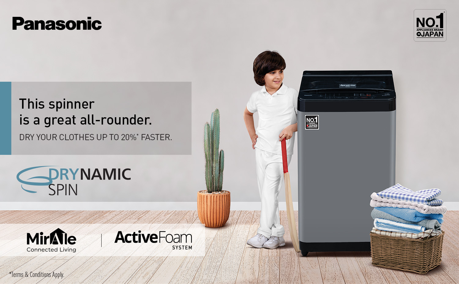 In traditional washing machines, clothes tend to retain moisture after wash which then prolongs drying time in the sun too. Panasonic Top Load Washing Machines' dedicated 'Spin Only' course addresses this issue by offering up to 20%* faster drying than conventional washing machines.