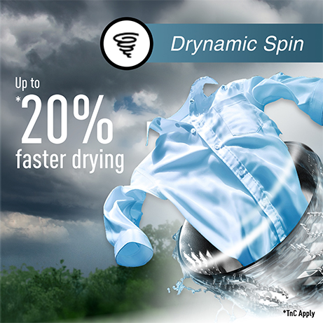 With Drynamic Spin, now get up to 20%* faster drying