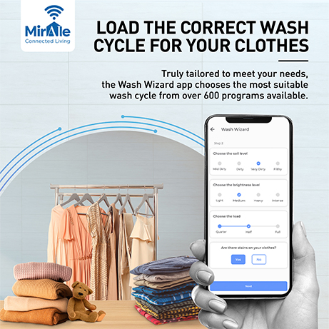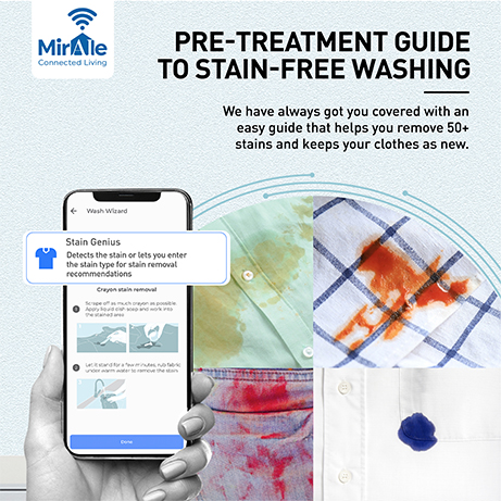 Wear those sparkling white clothes without a worry. The Stain Genius mode on the Miraie app gives you a comprehensive pre-treatment guide customized to fight different types of stains. You can can even click pictures of stains & let the app recognise the stain type to recommend appropriate treatment.