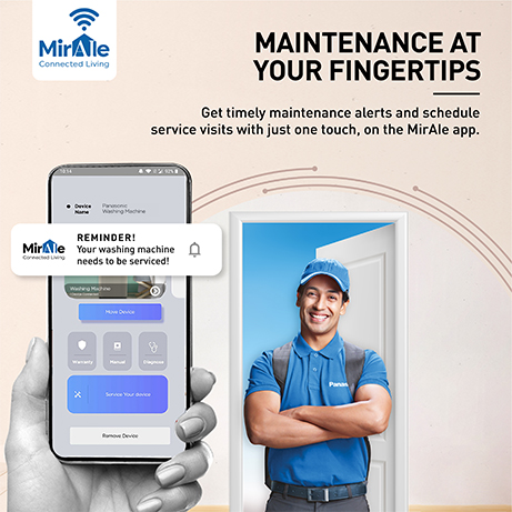 Request a repair, schedule a visit for service and do much more by placing service requests directly through the Miraie app. The app also updates you tub cleaning, lint filt cleaning, etc. to ensure timely maintenance of your machine.